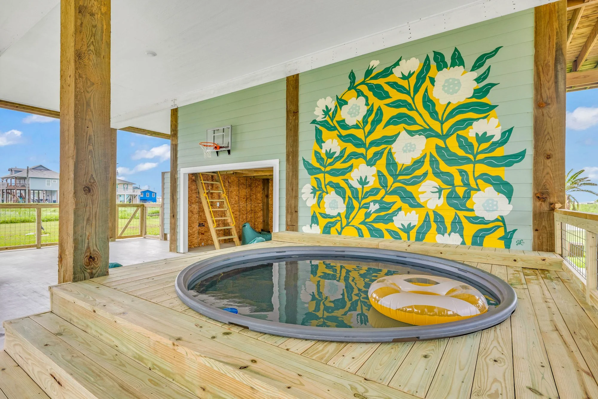 Take a dip in our refreshing 10-foot pool, perfect for cooling off on a hot Texas day. Lounge on the deck and capture amazing photos with the Insta-worthy mural. Grill up some food at the picnic table, then gather around the fire pit as the sun sets.